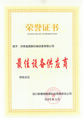 2022 年河南圓振榮獲四川新鋰想最佳設備供應商 —— 2025-09-11